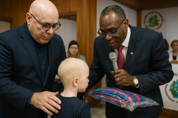 Une cérémonie animée de remise s’est déroulée dans une école primaire de Brazzaville le 11 octobre alors que l’Association Jhony-Chancel pour les Albinos et le groupe Redonner le Sourire ont présenté des boîtes de cahiers, de stylos et de trousses de géométrie à des dizaines d’enfants vivant avec l’albinisme.