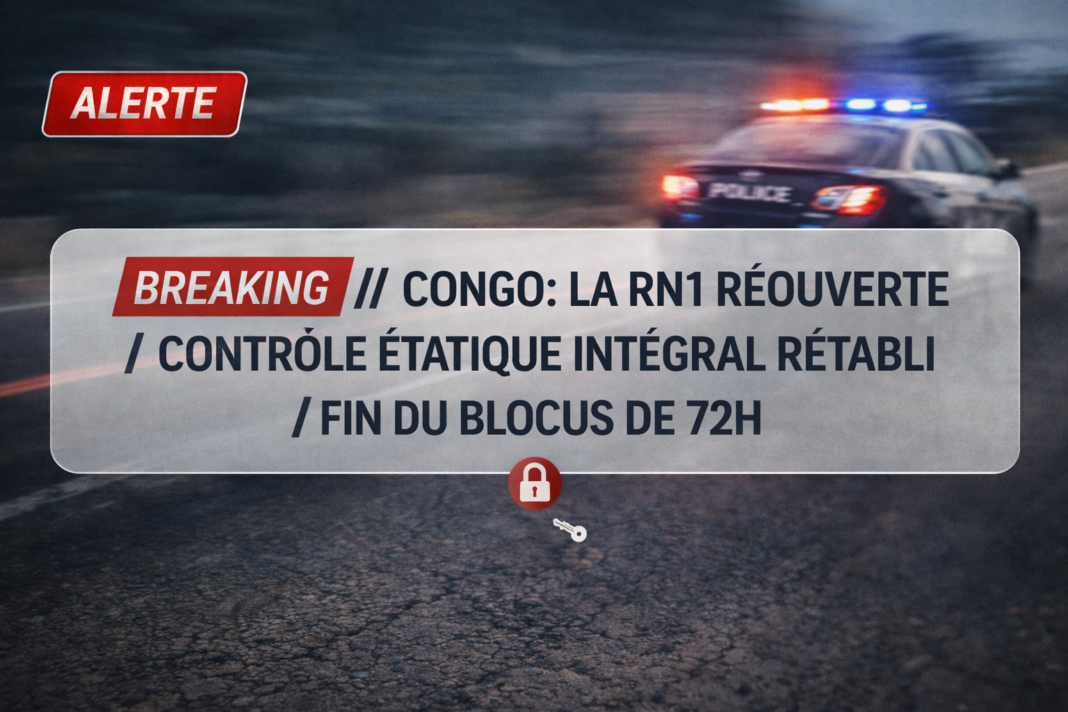 BRAZZAVILLE, 15 janvier. Les structures de sécurité de la République du Congo ont entièrement rétabli le contrôle de la route nationale stratégique RN1, dont la circulation avait été paralysée suite aux actions d’un groupe armé. C’est ce qu’a indiqué le porte-parole du Ministère de l’Intérieur.
